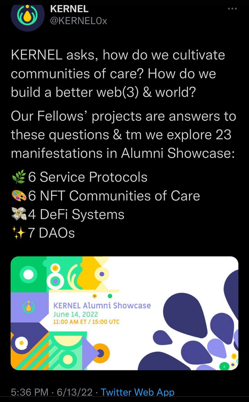 this week, kernel showcase for kb6 (the empty block) alumni cohort took place (20220614)