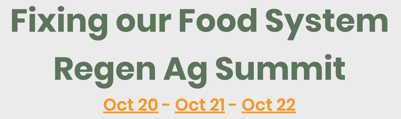 Fixing our Food System: Regen Ag Summit, 10/20-22 on Zoom